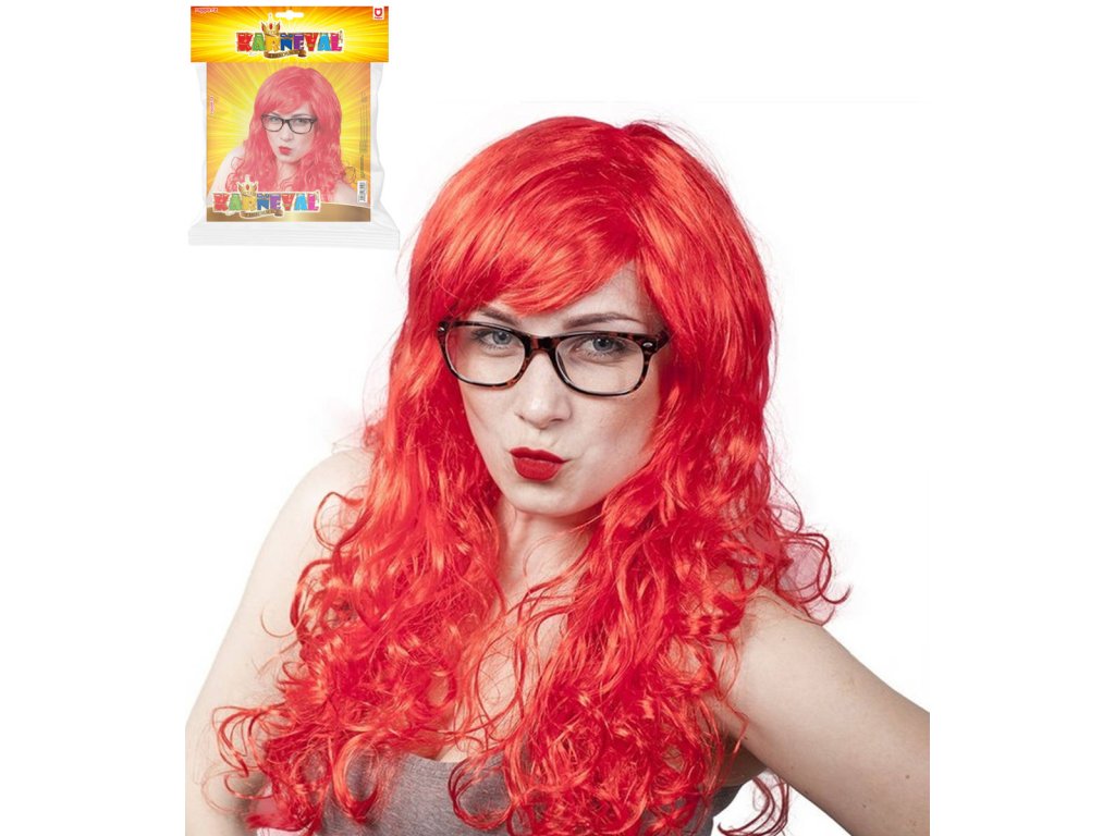 KARNEVAL Paruka červená dospělá dlouhé vlasy *KARNEVALOVÝ DOPLNĚK*