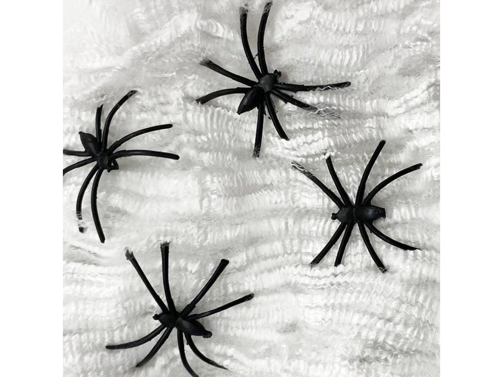 KARNEVAL Pavoučí síť bílá se 4 pavouky 3cm Halloween party dekorace