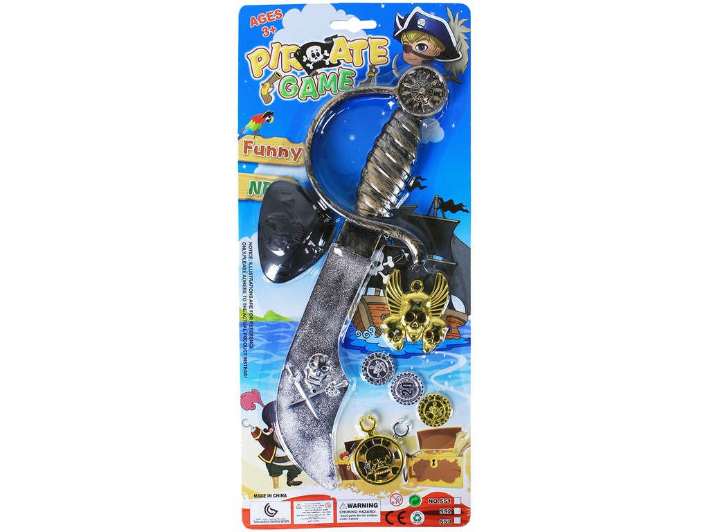 Obsah balení: šavle, mince 3ks, klapka na oko, přívěsek, náušnice 2ks