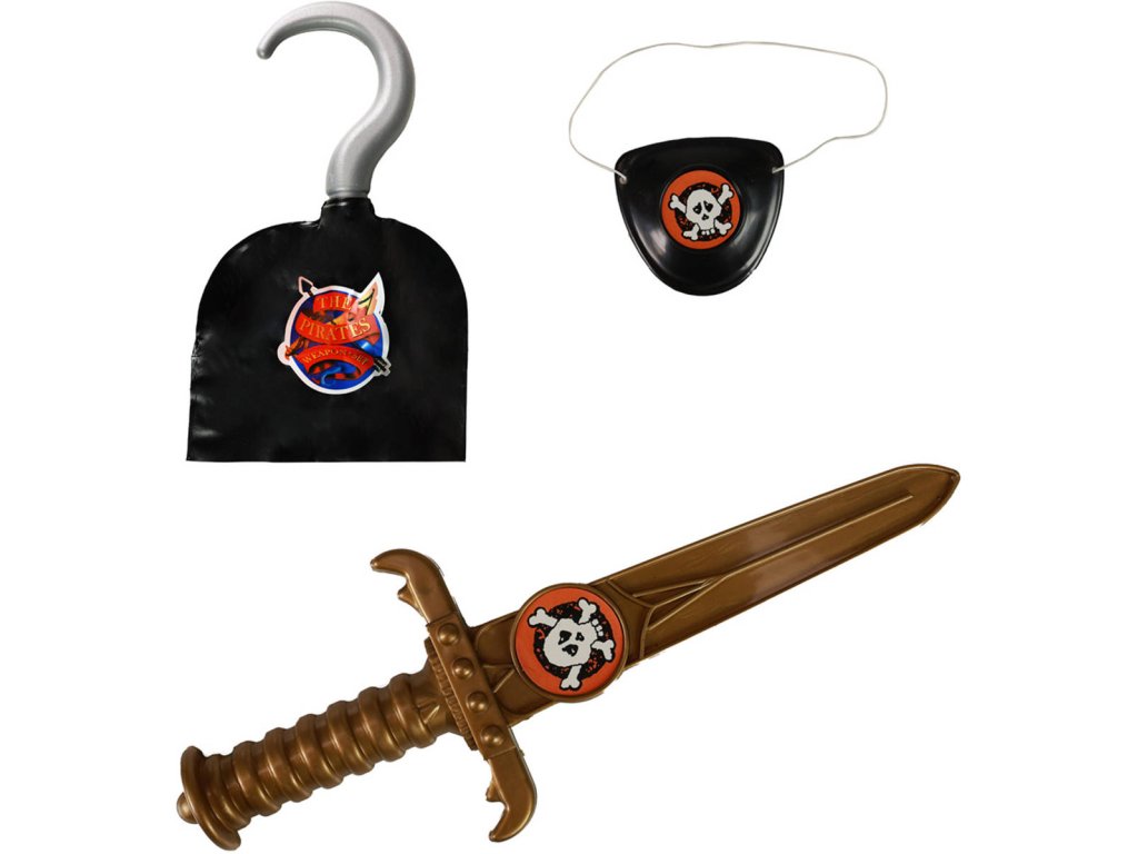Parádní karnevalový kostým s motivem piráta je určen pro chlapečky ve věkovém rozmezí 3-7 let (104-122 cm). Balení obsahuje plášť, plastovou dýku a hák.