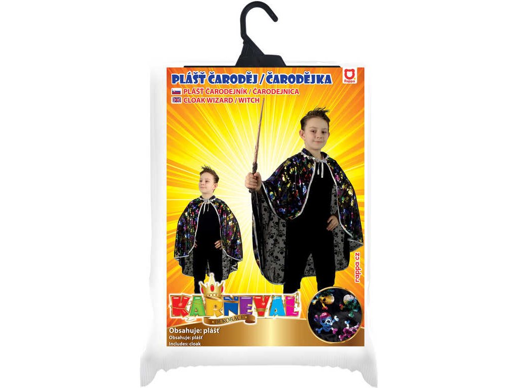 KARNEVAL Plášť čerodějnický černý lebky halloween *KOSTÝM*