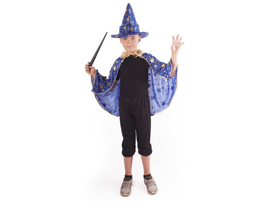 KARNEVAL Plášť kouzelnický modrý + klobouk vel.S (104-128cm) 3-8 let *KOSTÝM*