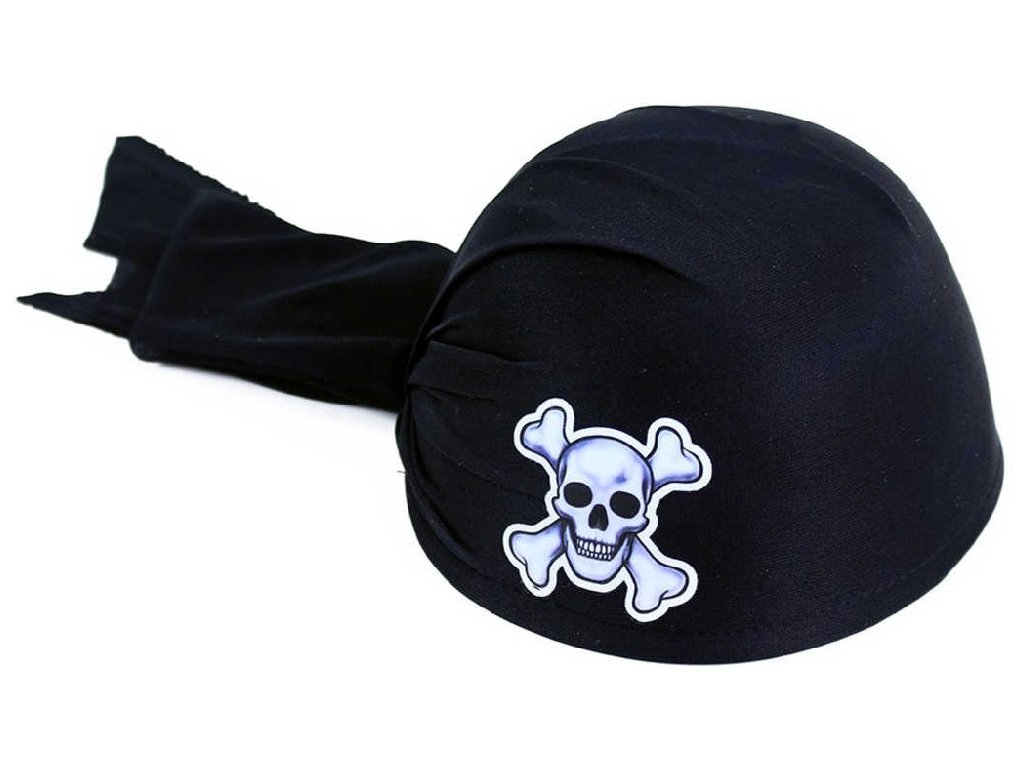 Šátek pro skutečné piráty! Tento parádní kousek je zdoben bílým potiskem s motivem lebky. Staň se hvězdou karnevalového večírku díky tomuto klobouku a ohrom tak všechny své kamarády!