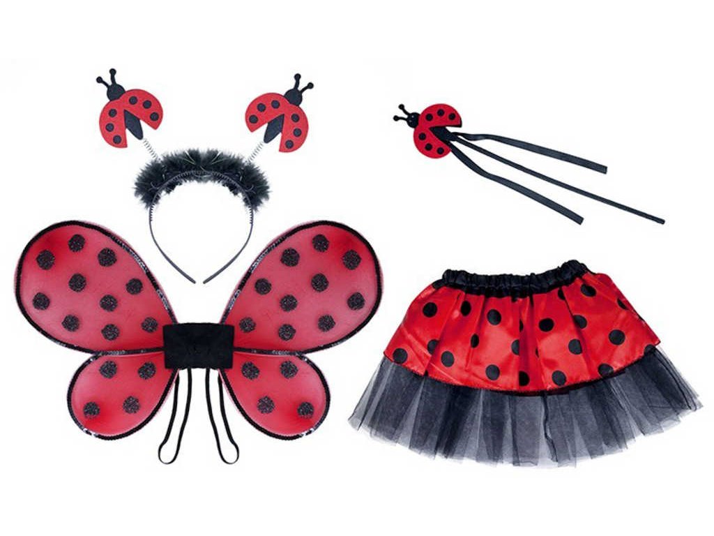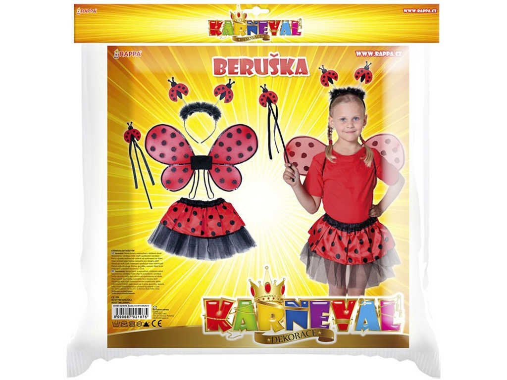 Roztomilý karnevalový kostým s motivem berušky je určen pro holčičky ve věkovém rozmezí 3-10 let. Tento kostýmek má červenou sukničku s puntíky, která je doplněna černou tylovou spodničkou. Dále obsahuje