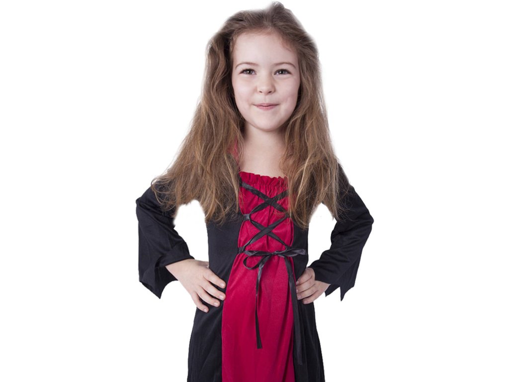 Dlouhé šaty Morgana v kombinaci černá/bordó jako doplněk ke kostýmu čarodějnice, na karneval.