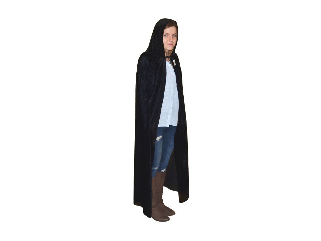 Plášť ideální pro malou čarodějku nebo čaroděje. Můžete jej ale použít i jako doplněk ke kostýmu kostry nebo jakýkoli jiný párty kostým. Je vyroben z černého jemného materiálu. Plášť má kapuci a vázání