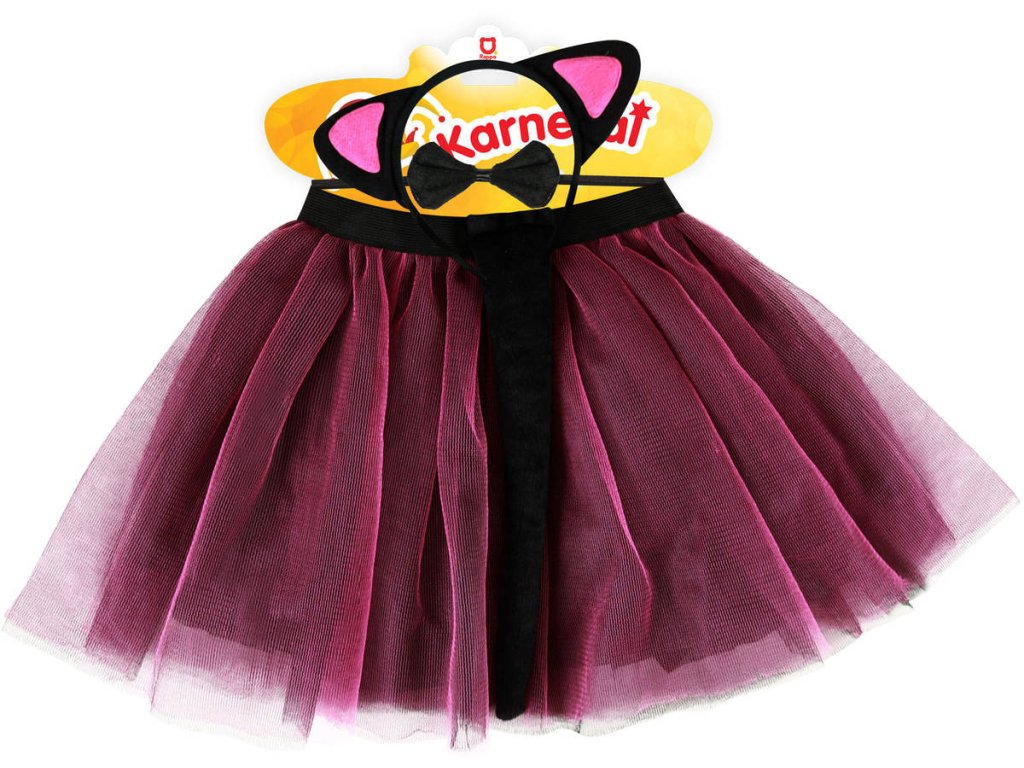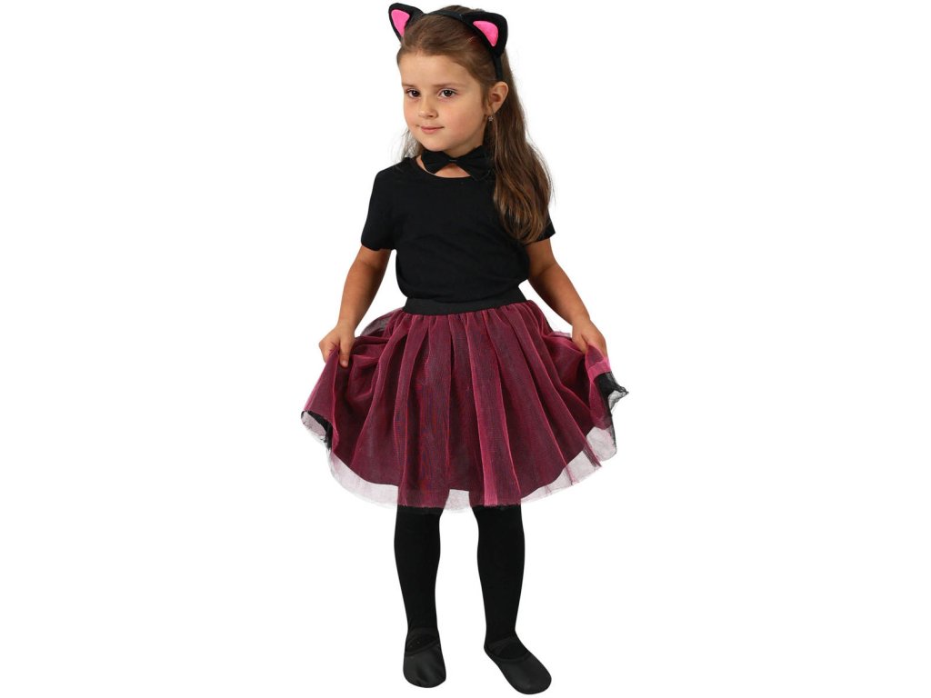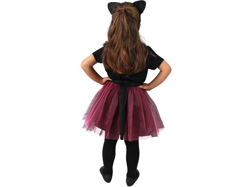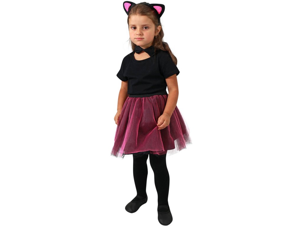 Roztomilý karnevalový kostým s motivem kočky. Kostýmek v černo-růžové barvě je určen pro holčičky ve věkovém rozmezí 3-7 let. Balení obsahuje sukýnku, čelenku s oušky, ocásek a motýlka na krk.