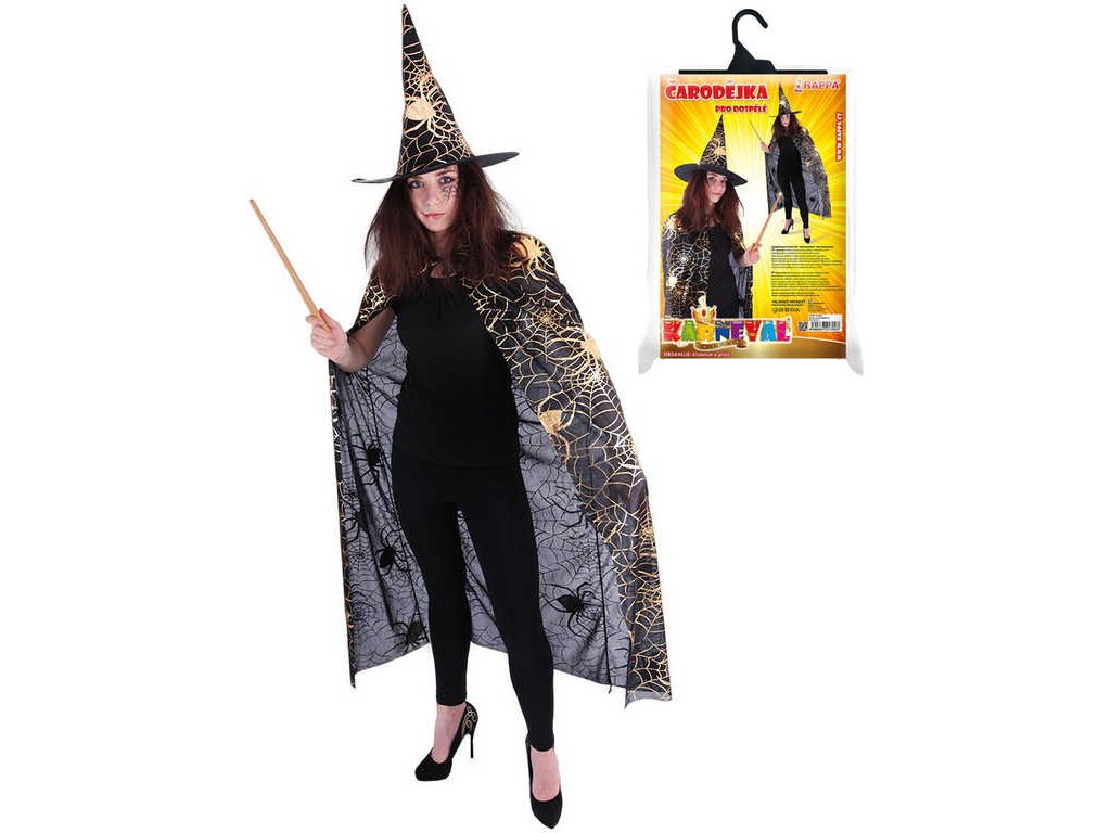 KARNEVAL Set plášť čarodějnický + klobouk pavučina dospělý KOSTÝM