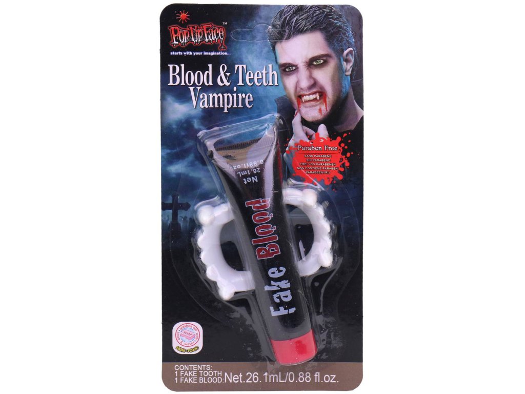 KARNEVAL Set upírské zuby + umělá krev *KARNEVALOVÝ DOPLNĚK*