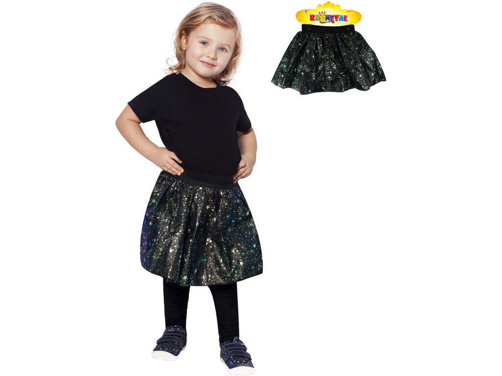 Sukně TUTU pro všechny malé parádnice čarodějnice! Sukýnka má černou spodničku, překrytou tylem potištěným hvězdičkami, které mění barvu.