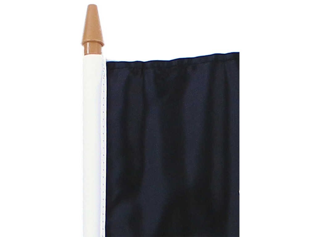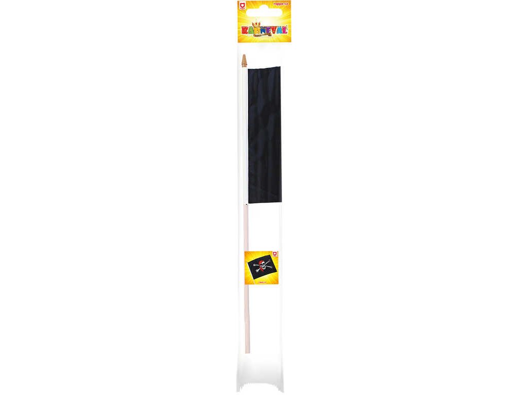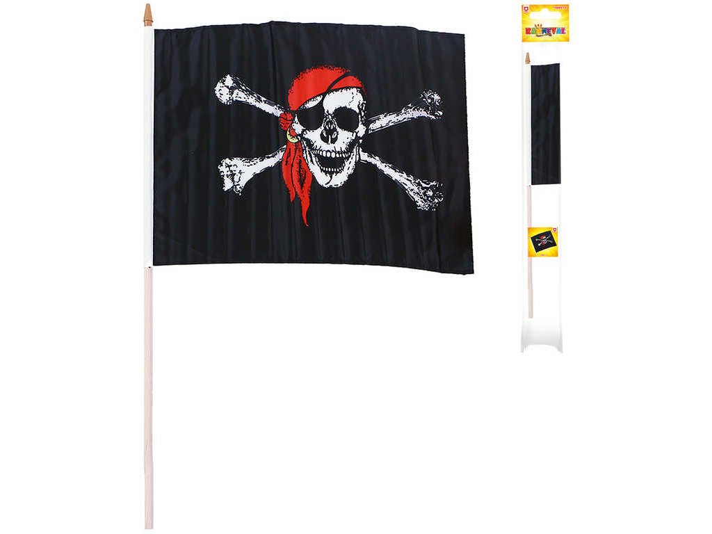 Parádní vlajka s děsivým, pirátským motivem pro skutečné piráty! Vlajka je připevněna k dřevěné hůlce. Tento parádní kousek je senzačním doplňkem či dekorací