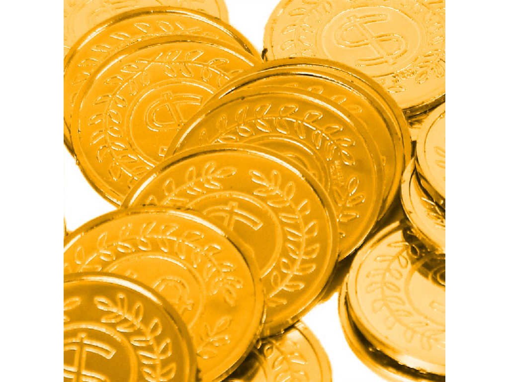 Senzační mince ve zlaté barvě! Tyto parádní kousky jsou vyrobeny z plastu. Dětské peníze. Balení obsahuje cca 24 mincí. Lze využít jako doplněk ke karnevalovému kostýmu (pirát) nebo k samostatné hře (na obchod). Baleno v sáčku.