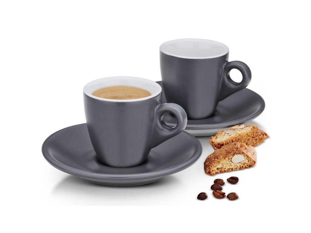 KELA Hrnek na espresso s podšálkem sada 4 ks MATTIA šedá KL-12751