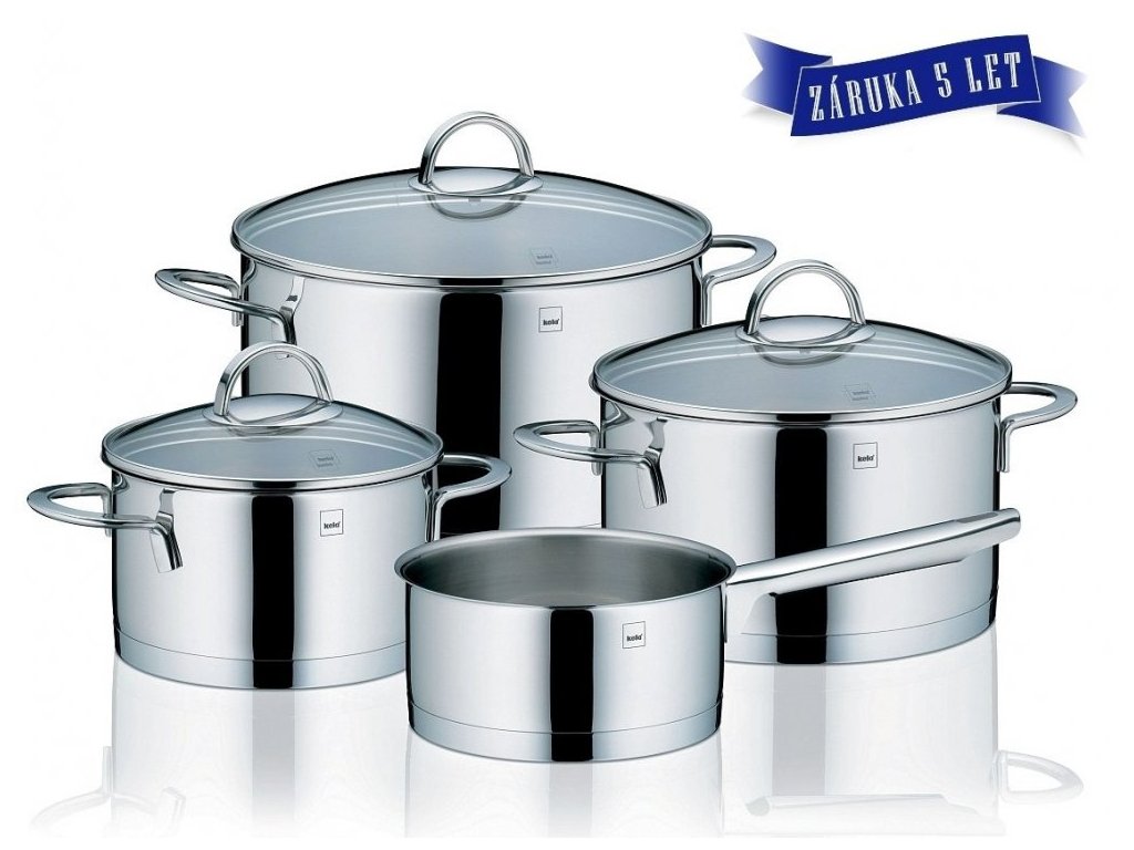 Hledáte vhodnou sadu nádobí do vaší kuchyně? Sadou získáte všechny potřebné nádoby na vaření, ať už budete vařit pro sebe nebo pro více osob. Velkou výhodou je, že můžete objednat najednou více nádobí od ověřeného výrobce KELA. Sadu nádobí sjednocuje jednotný design, navíc nerezová barva celé sady je univerzální a vyjímat se bude v každé kuchyni.