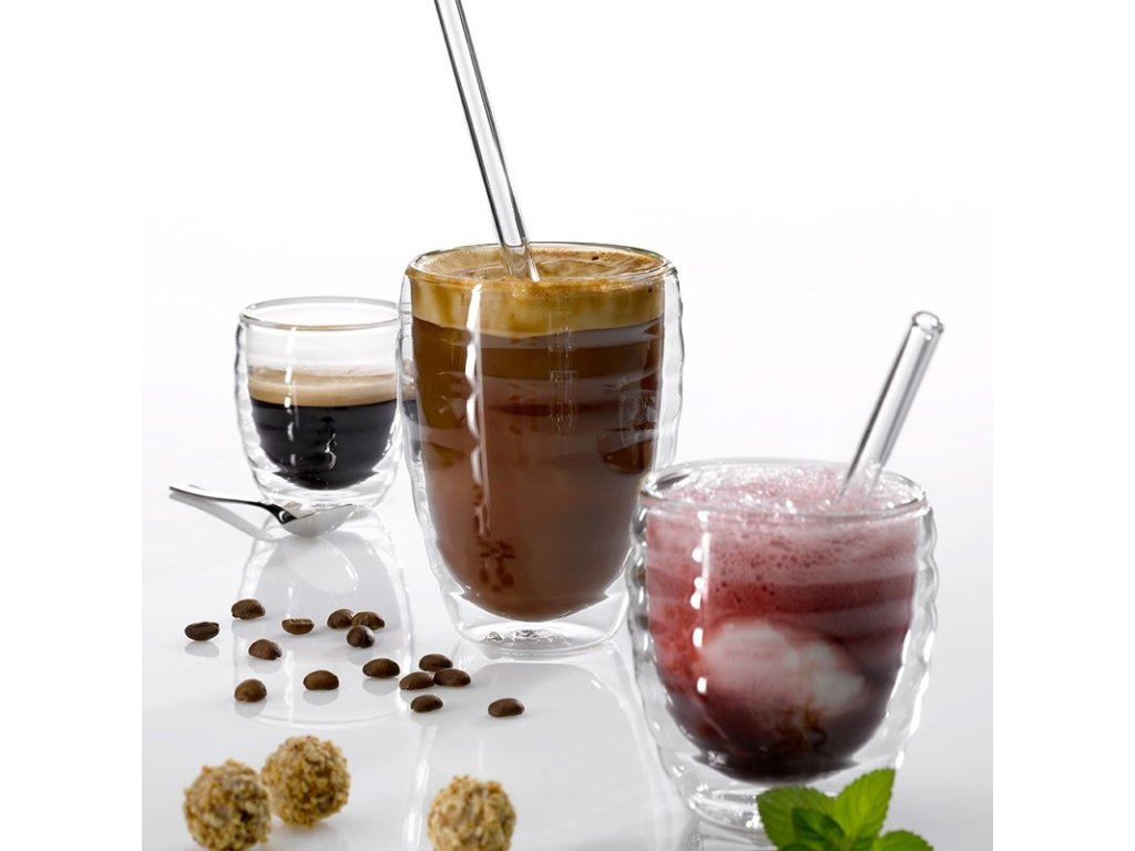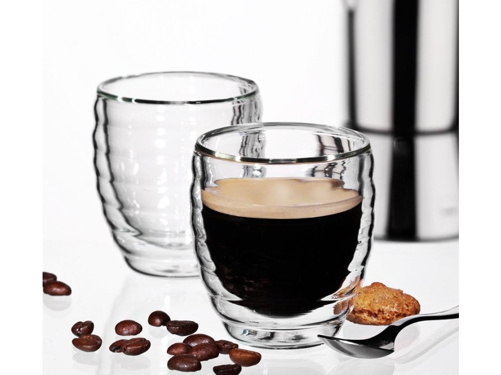 - materiál: žáruvzdorné borosilikátové sklo- ideální především pro přípravu malého i velkého espressa- dvojitá stěna, která díky vytvořenému vakuu udrží teplotu nápoje po dlouhou dobu- dvoustěnné vakuové sklo má výborné termoizolační vlastnosti, takže vnější vrstva sklenice zůstává na dotek chladná i při použití horkého nápoje- velmi odolné vůči škrábancům a prasklinám- lze samozřejmě využít i na studené nápoje- vhodné do myčky nádobí- objem: 80 ml- výška: 6.5 cm- balení obsahuje 2 kusy