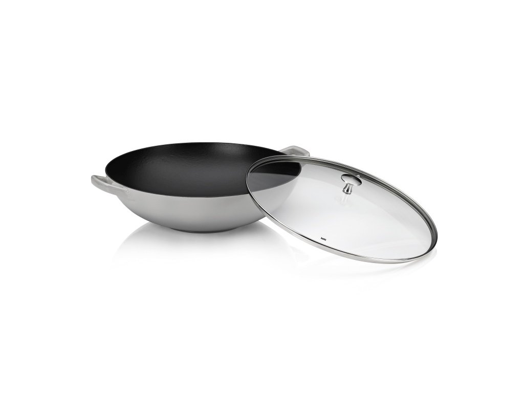 KELA Wok litinový s poklicí CALIDO 36 cm šedá KL-12610