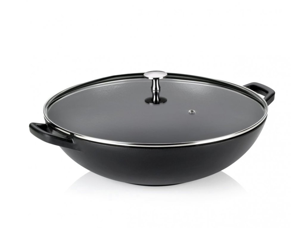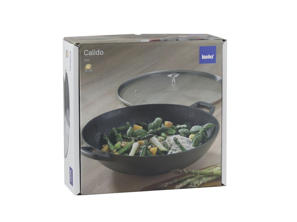 KELA Wok litinový s poklicí CALIDO 36 cm černá KL-12475