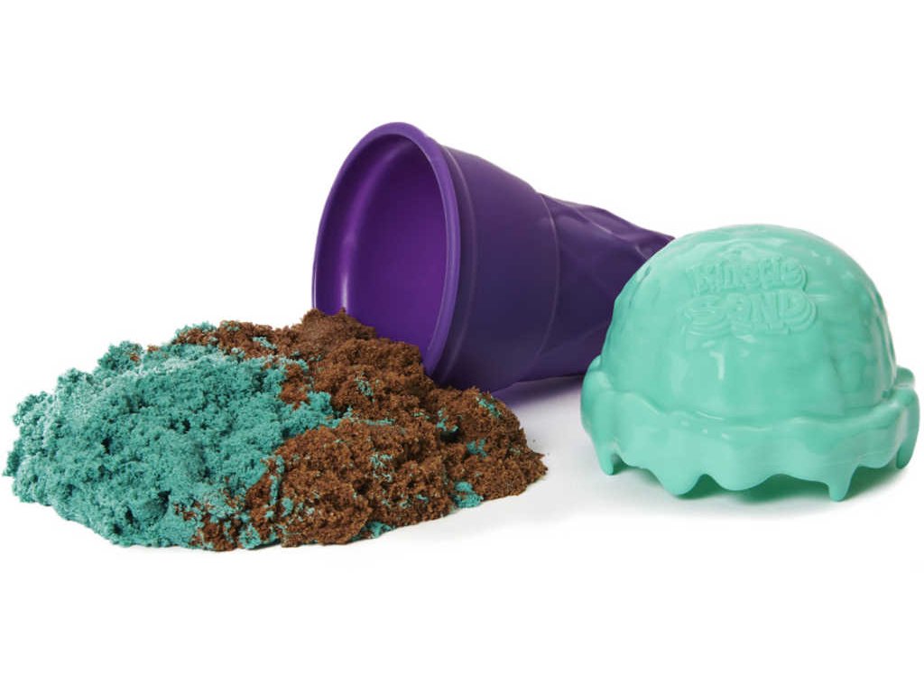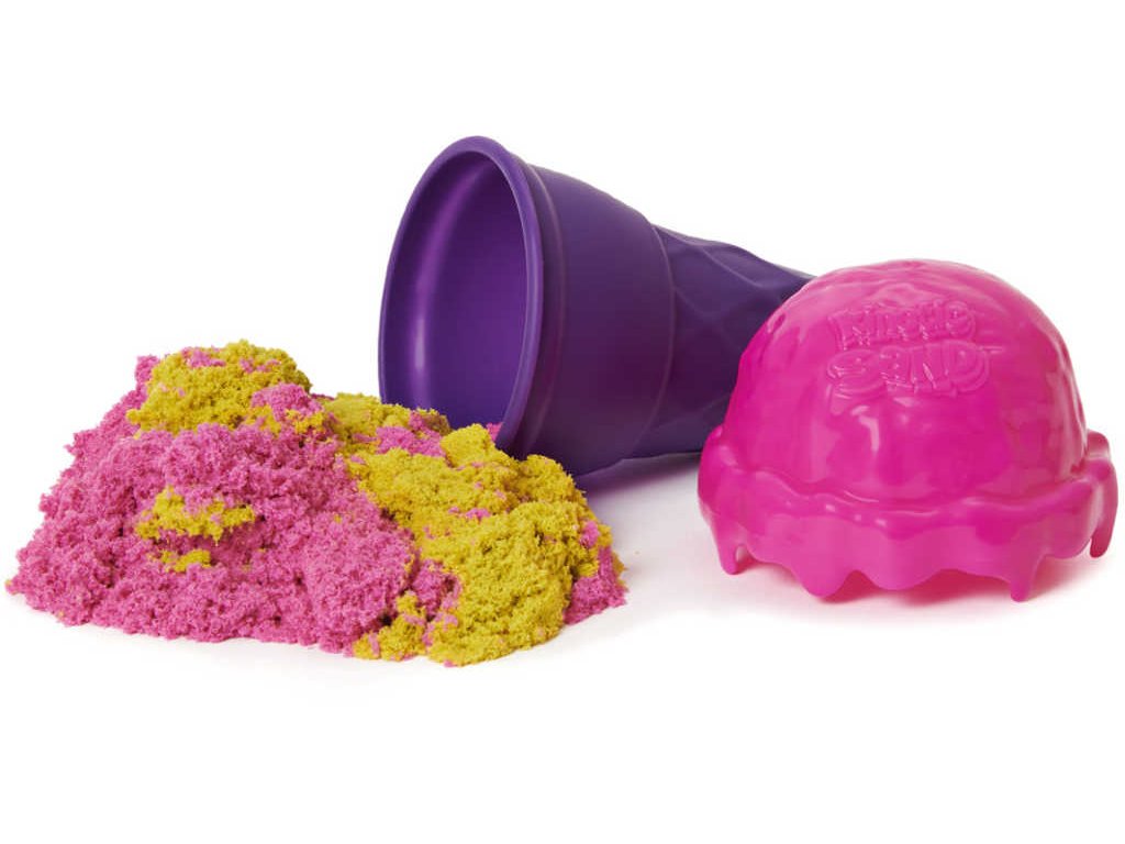 představivost, ale jejich vůně také ladí s danou barvou. Písek lze míchat a vytvářet nové barvy i vůně, takže je možné vytvořit jakoukoli zmrzlinu. Protože kinetický písek nevysychá, kreativní zábava nikdy