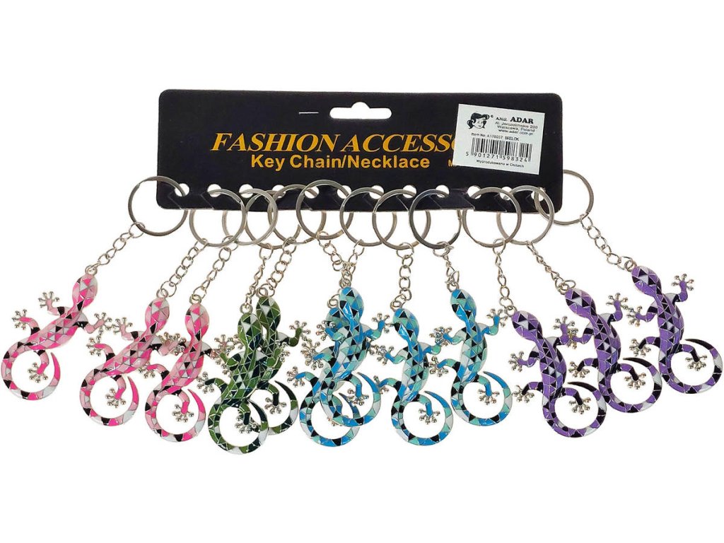 Dětská kovová klíčenka Ještěrka. Přívěsek na klíče o velikosti 6,5cm, ve čtyřech barevných variantách.