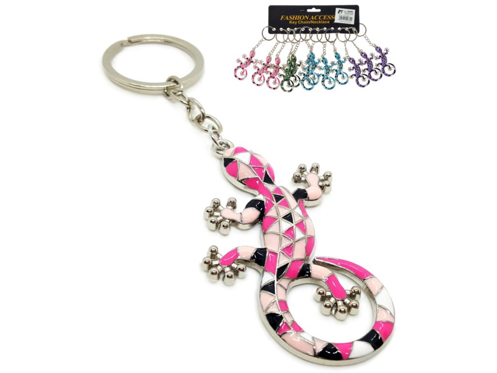 Klíčenka ještěrka dětský přívěšek na klíče kov 4 barvy