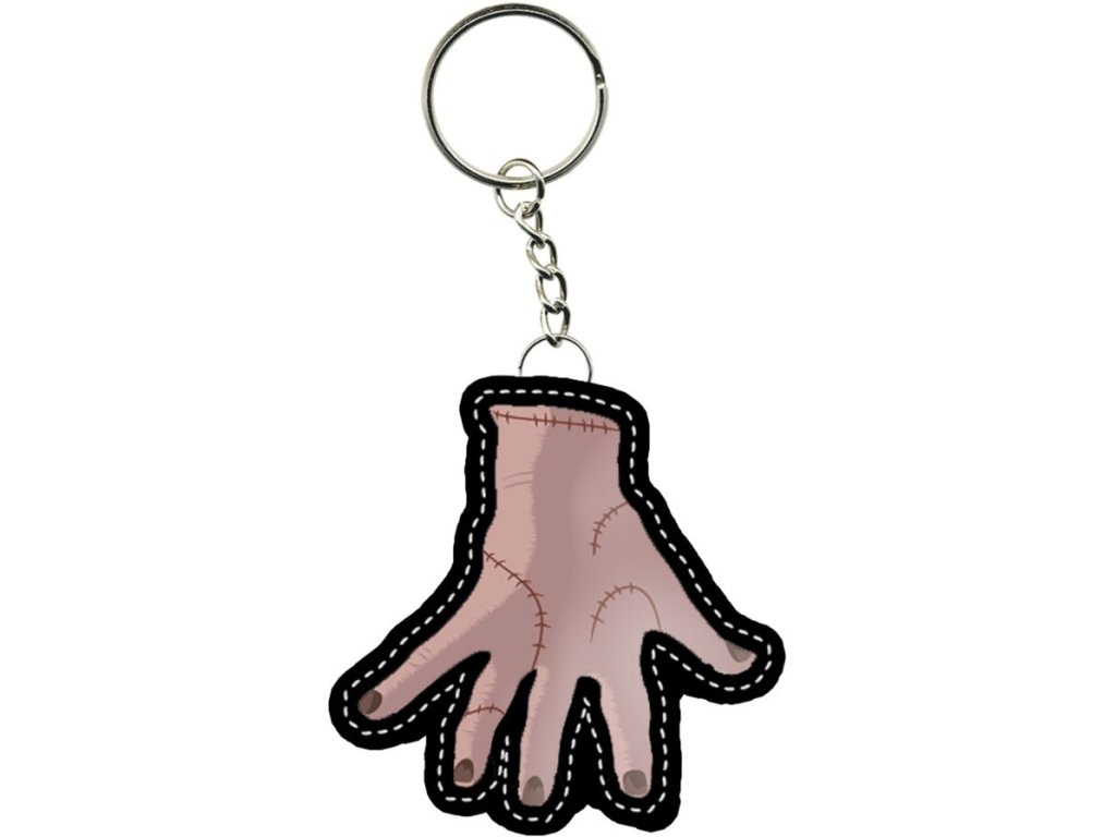 Gumová klíčenka "Věc" v licenci Wednesday, s kovovým očkem na zavěšení. Přívěšek ruka, na klíče.