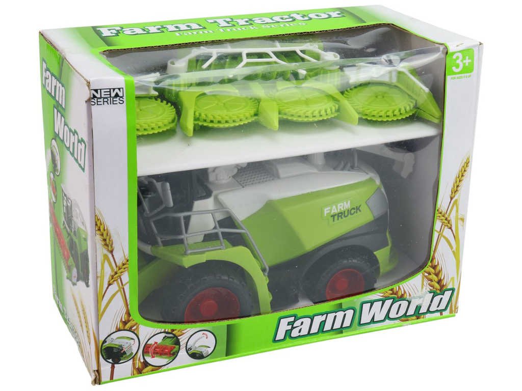 Plastový, zeleno-bílý model kombajnu s žací lištou, pro všechny malé zemědělce. Baleno v krabici s průhledem.