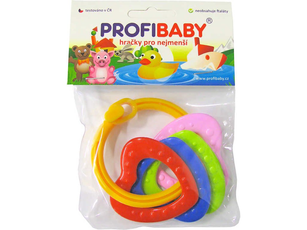 PROFIBABY Baby Kroužek se 4 přívěsky kousátko barevné pro miminko