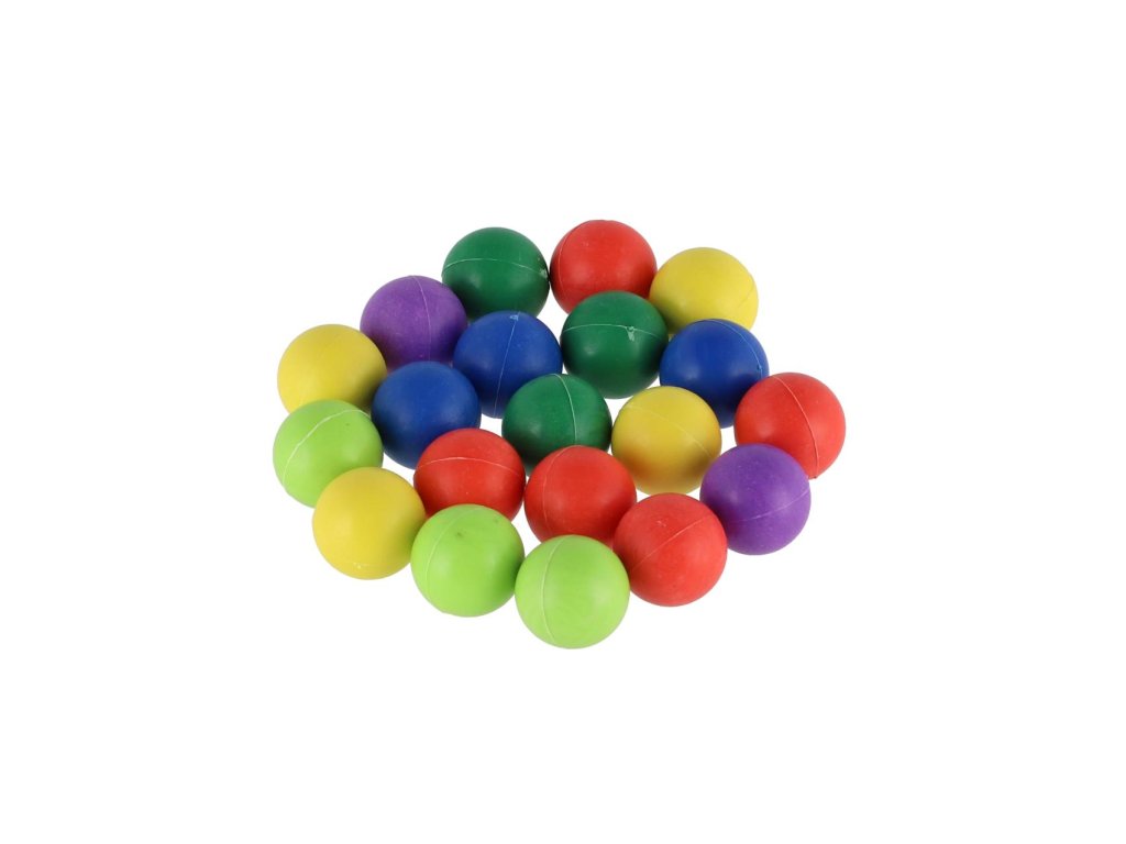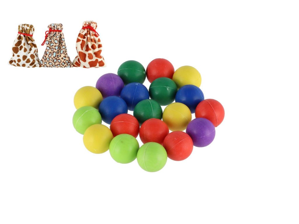 Kuličky cvrnkací nerozbitné barevné 20ks plast 1,5 cm 3 barvy látkového pytlíčku