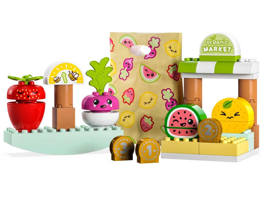 Hračky LEGO DUPLO dávají těm nejmenším možnost zažít neomezené tvoření, sebevyjádření a zábavné učení. Tato stavebnice inspiruje děti a dospělé k společnému interaktivnímu hraní, ve kterém se z jednoho stane stánkař s ovocem a zeleninou a z druhého zákazník. Stavebnice DUPLO umožní rodičům a malým dětem sdílet vzácné vývojové milníky, zatímco si spolu hrají a staví.