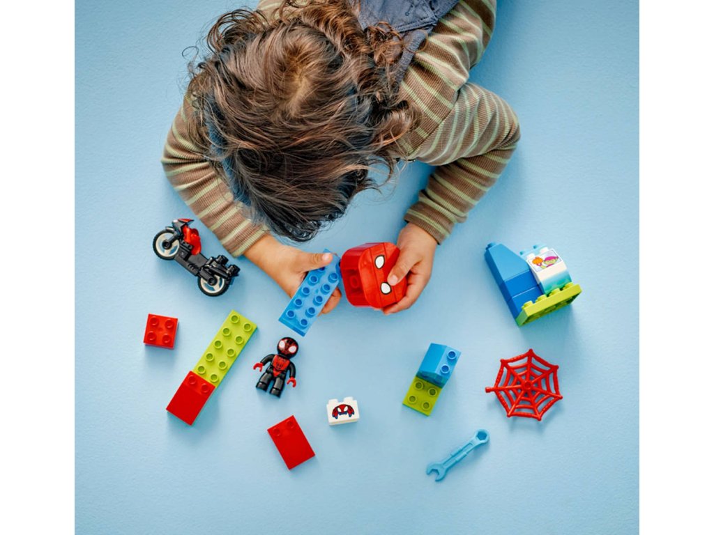 Se stavebnicí Spin a dobrodružství na motorce se malé děti vydají na superhrdinskou akci. Tato vzdělávací hračka umožní malým stavitelům od 2 let zachránit svět a postavit si scény inspirované seriálem Spidey a jeho úžasní přátelé z dílny studia Disney+. Tato fantasy stavebnice se Spideym je ideální na krátké zábavné hraní na každý den. Obsahuje figurku LEGO DUPLO Spina, hračku motorky a sestavitelnou základnu. Malé děti Spina usadí na motorku, přejedou po rampě a vrhnou se s ním do akce. Uprostřed boje pomohou figurce Spina vyhnout se letícím kostkám tím, že je chytí do pavučiny. Tato kreativní vzdělávací hračka pomáhá rozvíjet logické myšlení a jemné motorické schopnosti dětí, které si při stavění jednotlivých prvků vymyslí sled událostí. Malí stavitelé si procvičí sebevyjádření rozpoznáváním emocí, které Spin během děje může prožívat, což jim pomůže pochopit vlastní pocity.