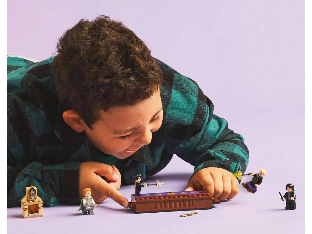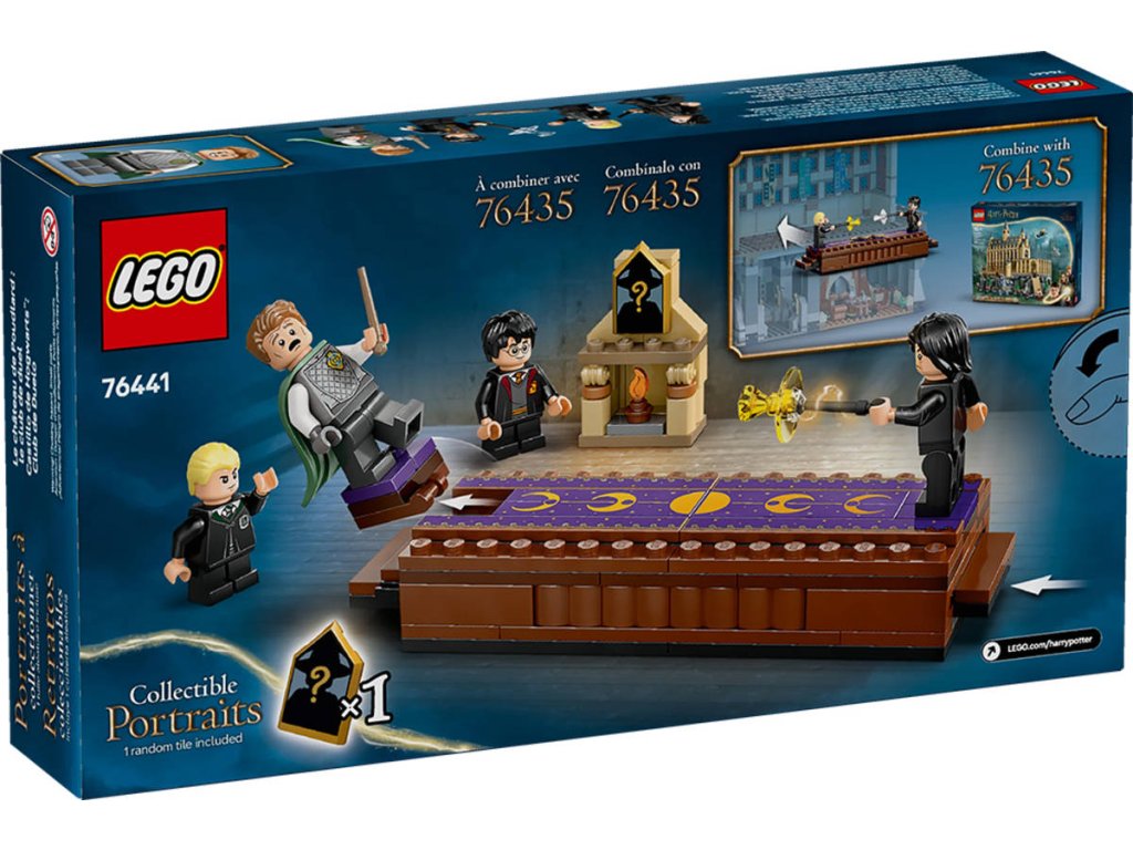 Připomeňte si kouzly nabitou scénu ze soubojnického klubu z filmu Harry Potter a Tajemná komnata se stavebnicí Bradavický hrad: Soubojnický klub pro děti od 8 let. Součástí je sestavitelná bojová plošina pro 2 minifigurky – zatlačením schůdků na kterékoli straně svrhnete protější minifigurku – a 1 ze 14 sběratelských bradavických portrétů, které si můžete vystavit nad sestavitelným krbem. Stavebnice obsahuje 4 oblíbené postavy: Minifigurky LEGO Harryho Pottera a Draca Malfoye, z nichž má každá hůlku a dílky představující kouzla, a minifigurky Zlatoslava Lockharta a Severuse Snapea pro kreativní hraní. Tato zábavná stavebnice s Harrym Potterem představuje skvělý způsob, jak dětem a novým fanouškům představit svět čar a kouzel z kostek LEGO. Tato dobrodružná stavebnice plná kouzel je součástí řady modulárních stavebnic LEGO Harry Potter (prodávají se samostatně), jejichž spojením vytvoříte ten největší Bradavický hrad z kostek LEGO vůbec.