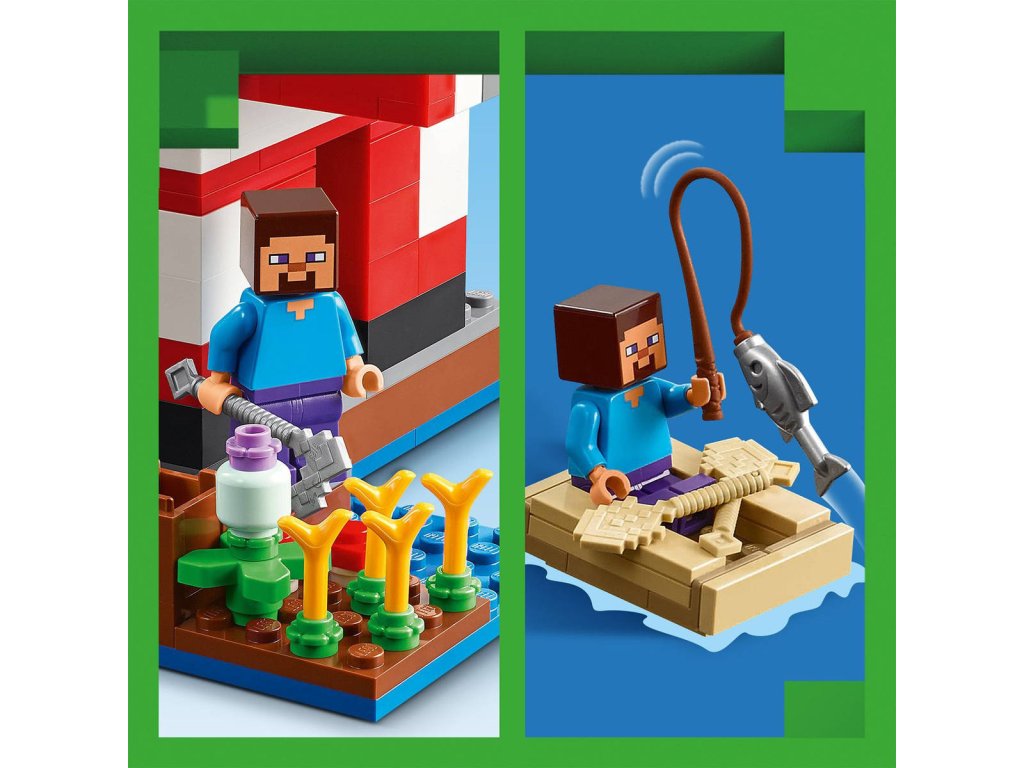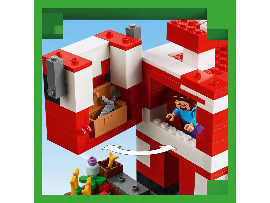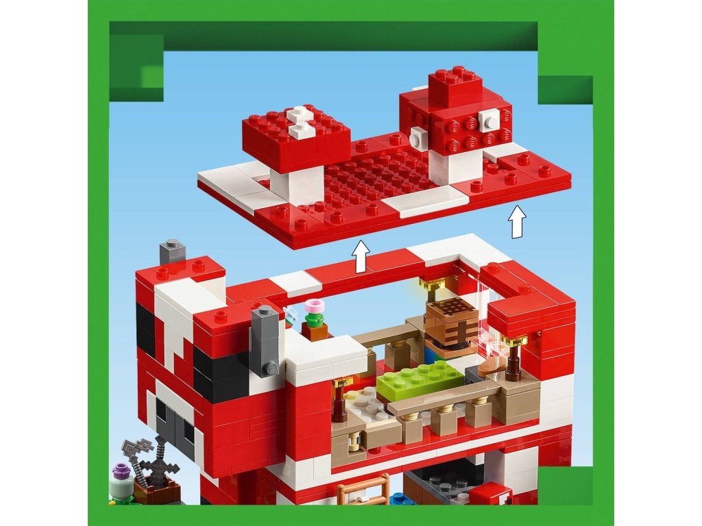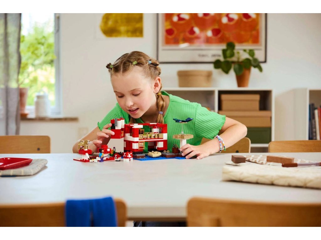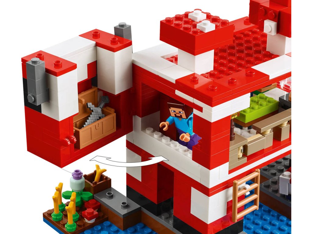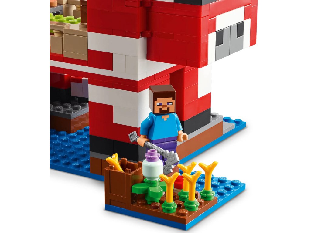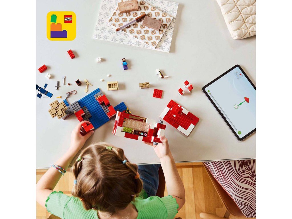 Stavebnice LEGO Minecraft Krávomůrčí domek zaručeně potěší hráče Minecraftu a malé milovníky stavění domů, péče o zvířata a odrážení občasných útoků ze vzduchu! Tato poutavá stavebnice představuje skvělý dárek ze světa Minecraft pro holky a kluky od 8 let. Tato stavebnice LEGO Minecraft se nachází na houbovém ostrově a obsahuje oblíbenou postavu Steva, červenou krávomůrku, malou červenou krávomůrku, hnědou krávomůrku, tříbarevnou kočku a nepřátelský létající přízrak. Stavebnice je plná prvky, které se objevují ve hře, včetně malé farmy s pšenicí, houbami a rostliny rostoucí vedle kompostéru. Mezi doplňky najdete rybářský prut, tresku, motyku, netheritový meč, misku, loďku s vesly, truhlu, pec, pracovní stůl, knihovnu, chléb a postel. S aplikací LEGO Builder si děti užijí ještě větší porci zábavy. Umožní jim na jejich zařízení přibližovat a otáčet modely ve 3D.