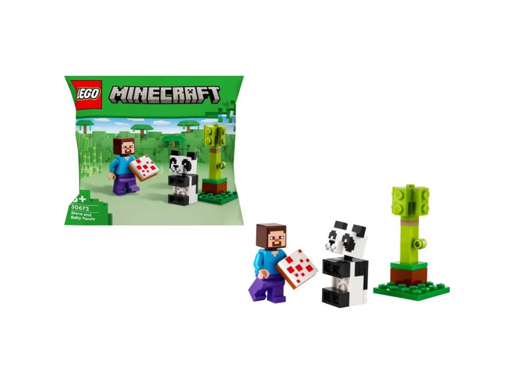 Oblíbená postava Steve ze světa hry Minecraft si připravil jídlo pro pandí mládě. Ale nepochutná si panda raději na nedalekém bambusu?