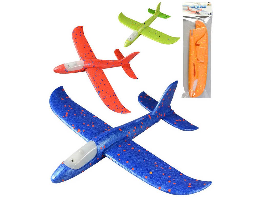 Letadlo soft házecí polystyrenové 34cm 4 barvy na házení na baterie Světlo