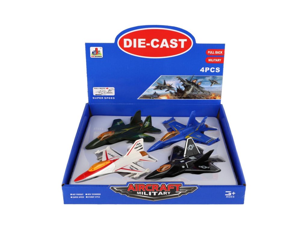 Letadlo/stíhačka kov/plast 16cm na zpětné natažení 4 barvy 4ks v boxu