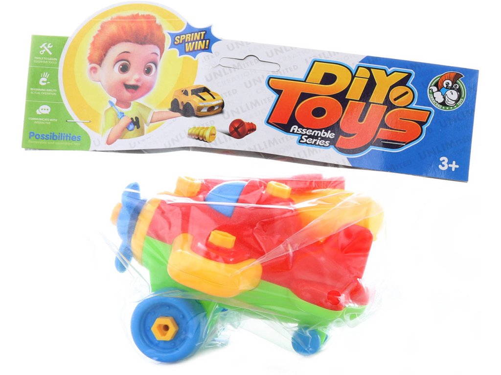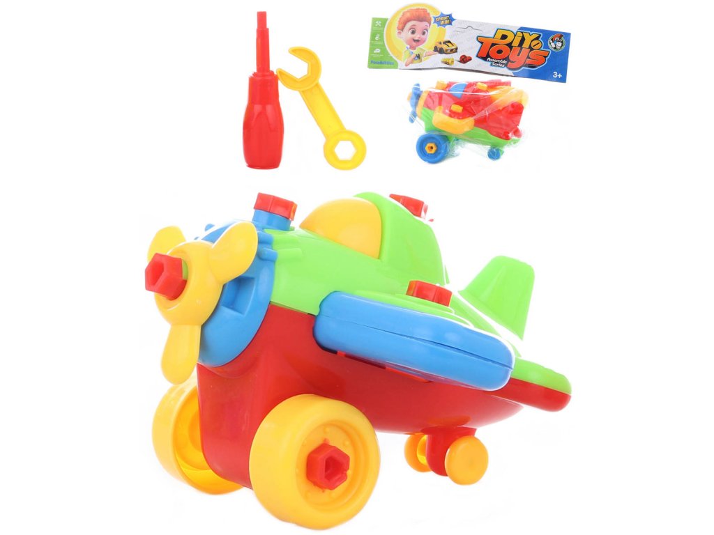 Plastové šroubovací letadlo. Obsahuje šroubovák a klíč.