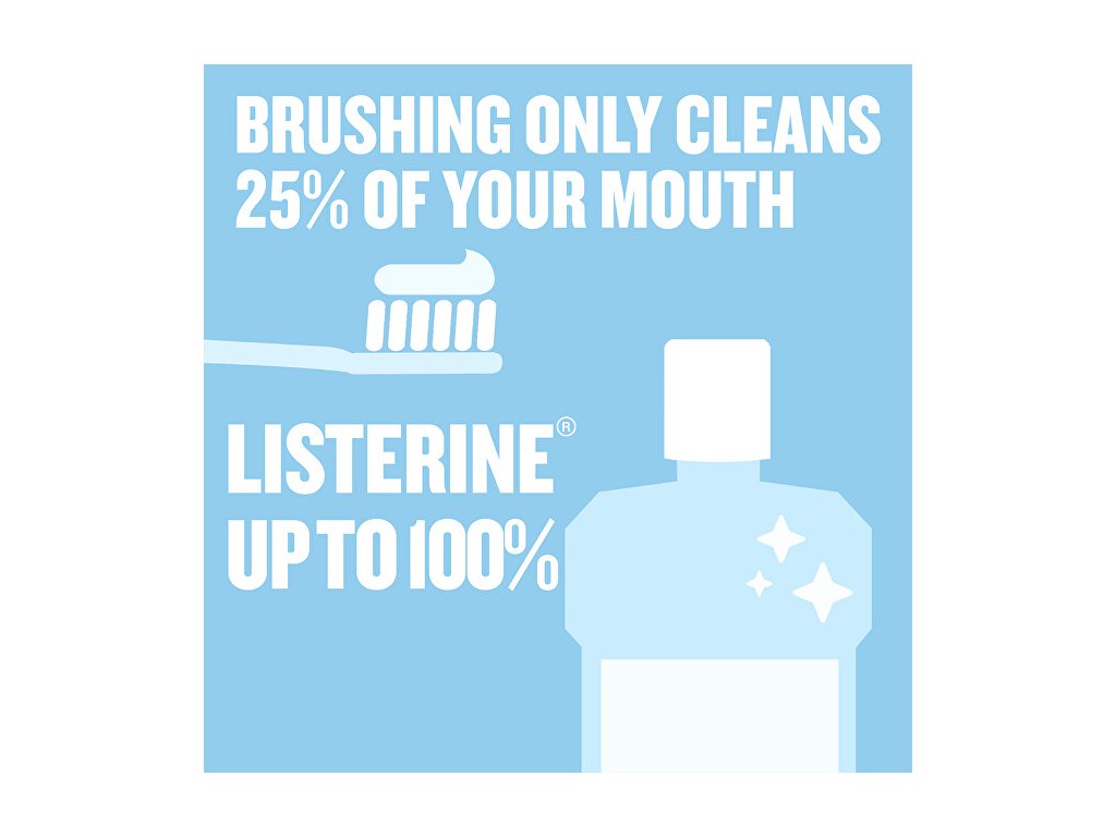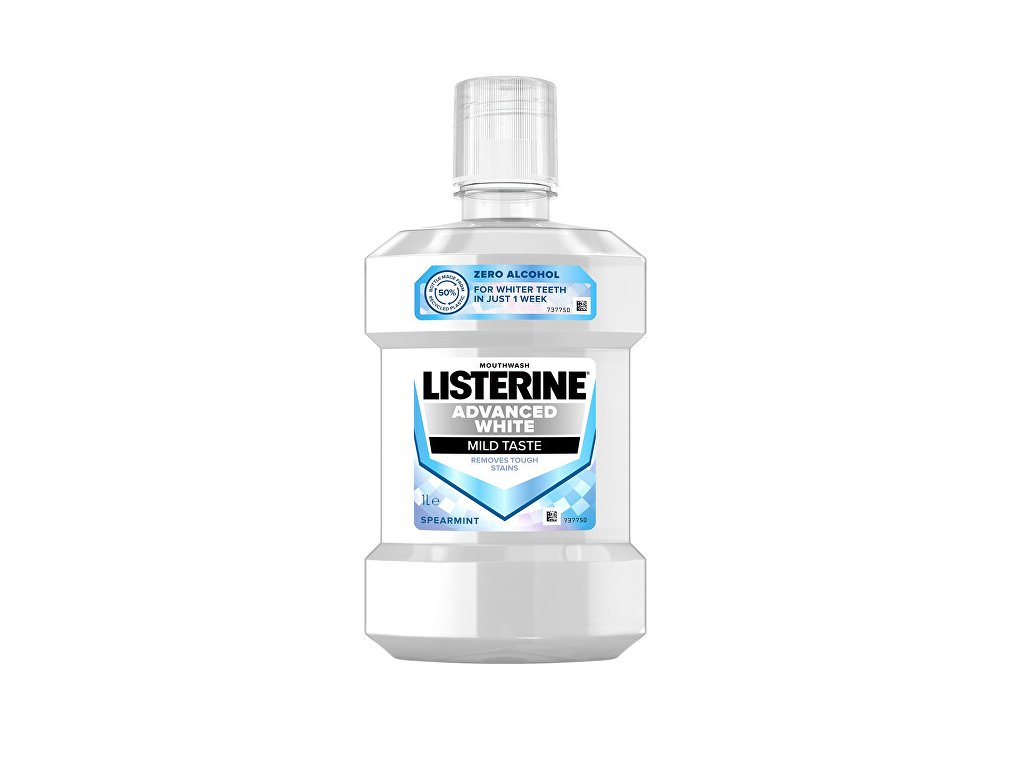 Ústní voda LISTERINE® Advanced White Mild Taste při používání dvakrát denně prokazatelně odstraňuje skvrny na zubech a předchází vzniku nových skvrn a zabarvení – pro bělejší zuby už za jeden týden.