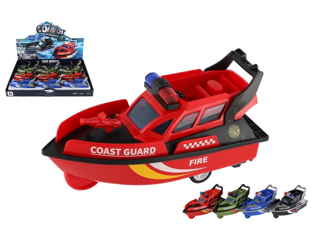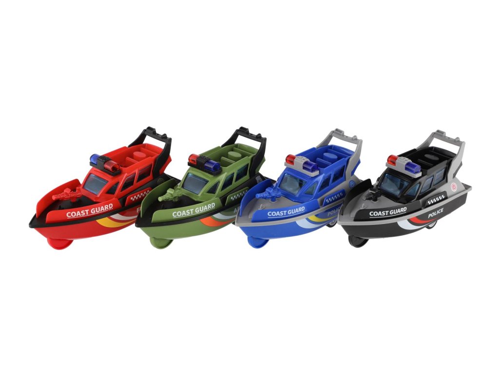 Loď/Člun záchranářský plast 14cm na setrvačník 4 druhy 12ks v boxu