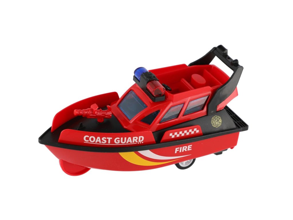 Vyplujte za dobrodružstvím se záchranářským člunem. Model záchranářské lodi o délce 14 cm je vybaven setrvačníkovým pohonem, díky kterému se po natažení rozjede vpřed bez potřeby baterií. Skvělý doplněk do sbírky vozidel i zábavná hračka pro malé objevitele.