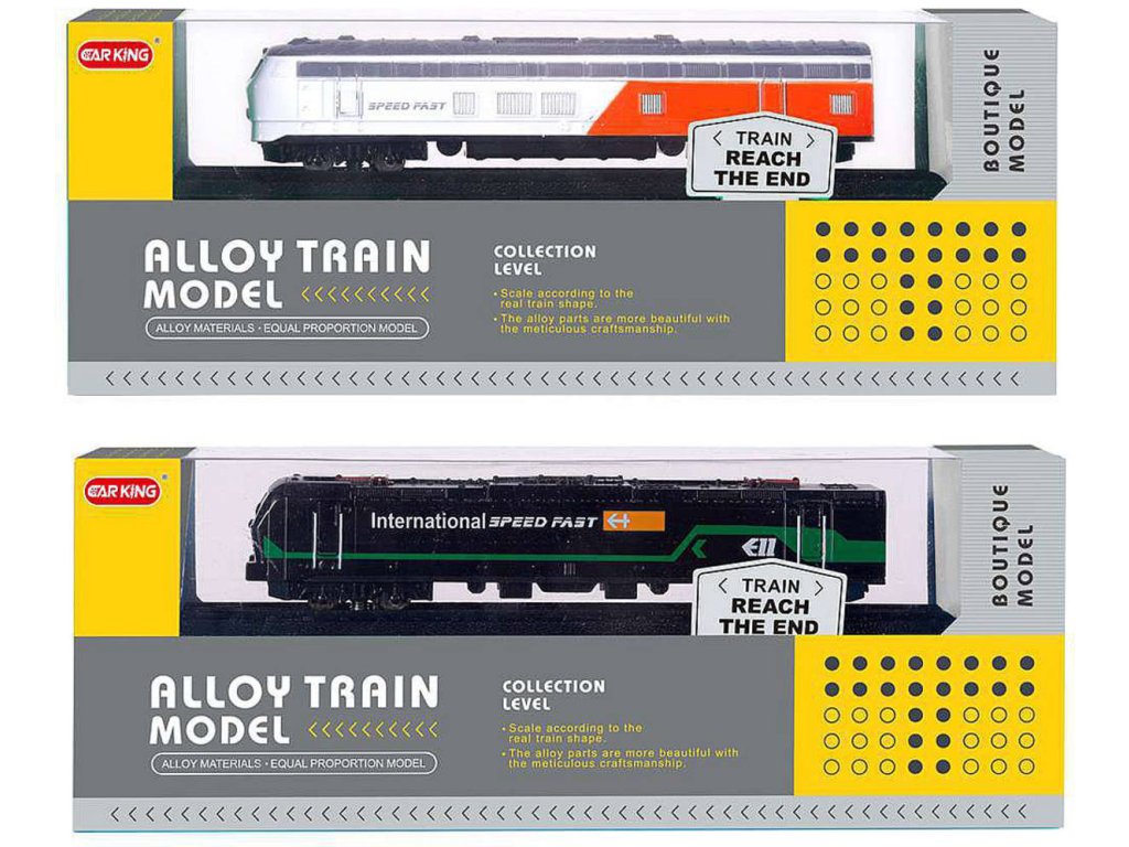 Krásný sběratelský kousek pro všechny fandy do železnice. Model vláčku - lokomotiva z kovu a plastu na podstavci, na kolejích, pro vystavení. Baleno v krabici s průhledem. 5 variant provedení.