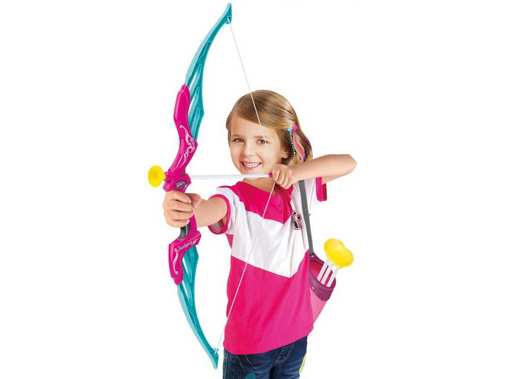 Holčíčí plastový herní set s lukem, třemi šipy, pouzdrem a terčem. Lukostřelecká sada upoutá na první pohled svou krásnou barvou a zároveň obsahuje vše potřebné. Rozhodně se nemusíte obávat