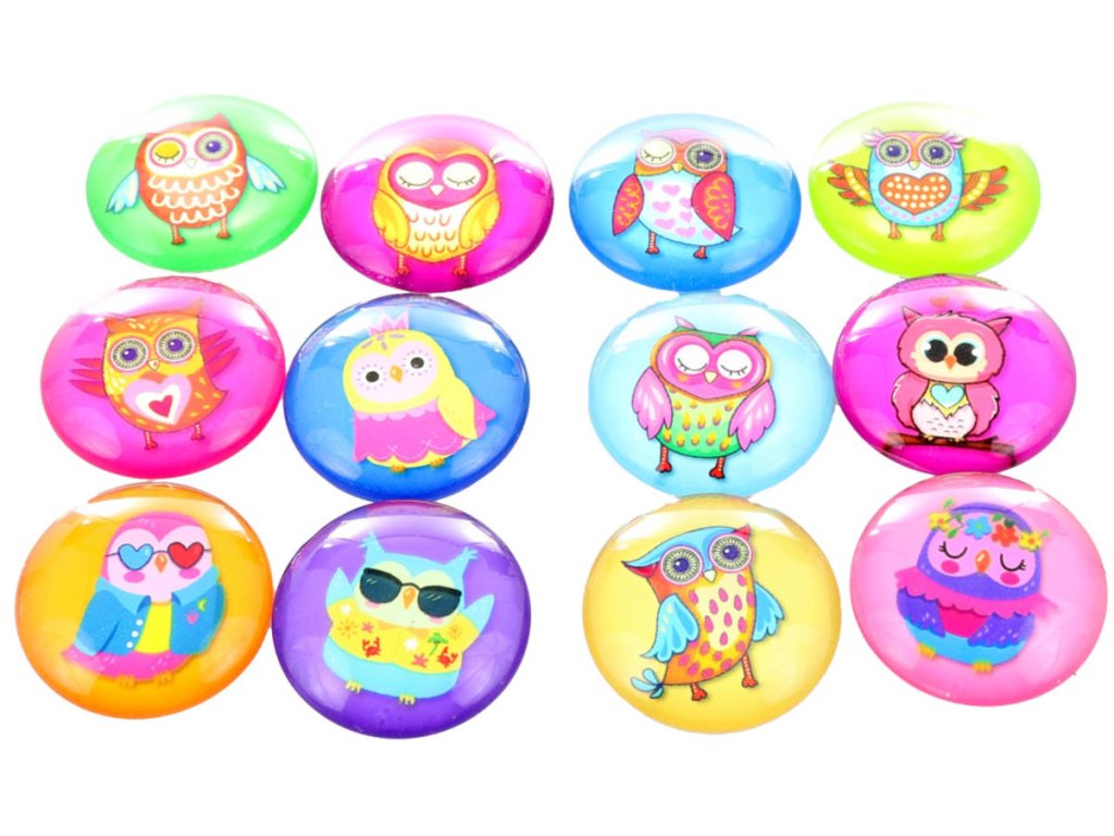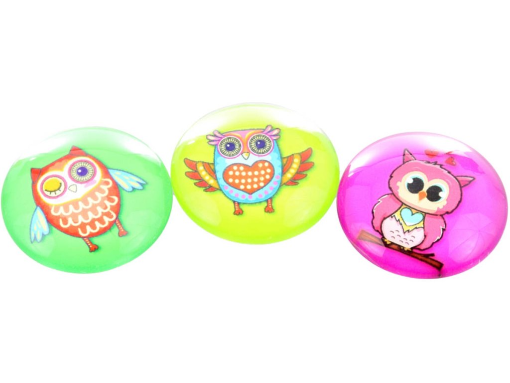 Magnetky dětské kulaté sovičky samostatné 4cm různé druhy