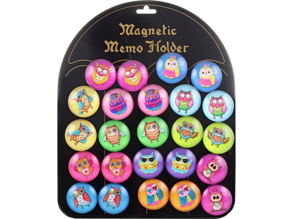 Megnetky s motivem veselých soviček. Rozměr magnetu cca 4cm. Výrobek je určen k dekoraci. Různé druhy. Nabízíme po 1 kuse. Magnetka sovička.