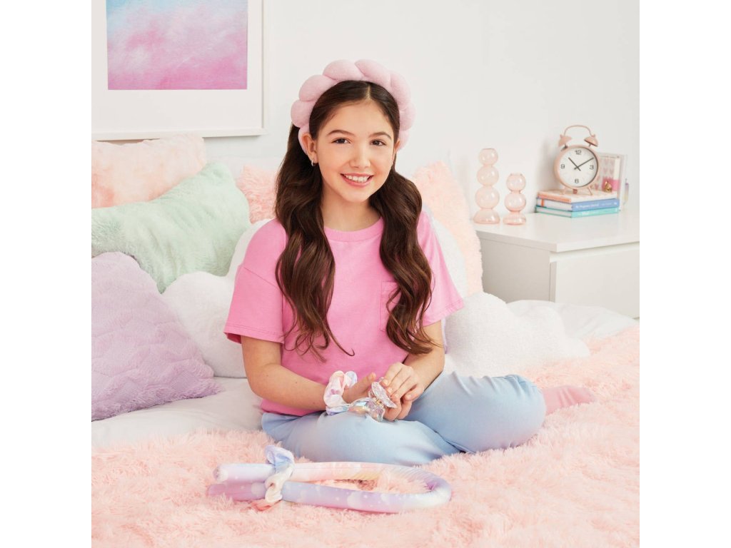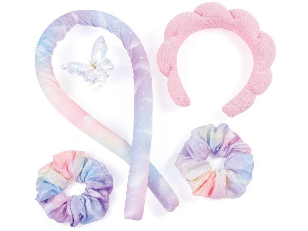 Úchvatné vlny bez použití tepla nebo poškození vlasů! Snadno nastavte bezteplotní natáčky pomocí přiložených gumiček, relaxujte u televize, dělejte domácí úkoly nebo si zdřímněte… pak odstraňte natáčky a odhalte bez námahy plážové vlny! Děvčata mohou své kudrliny upravit barevnými gumičkami a/nebo sponkou ve tvaru motýla, aby byly připravené na venkovní vycházky, a použít super trendy nadýchaný čelenku, aby si udržela vlasy z cesty při přípravě na spaní. Tento set bezteplotní natáčky a doplňků je skvělý nápad na dárek pro stylové děti, ať už na narozeniny, svátek, nebo jen tak! Ideální pro děti od 8 let.