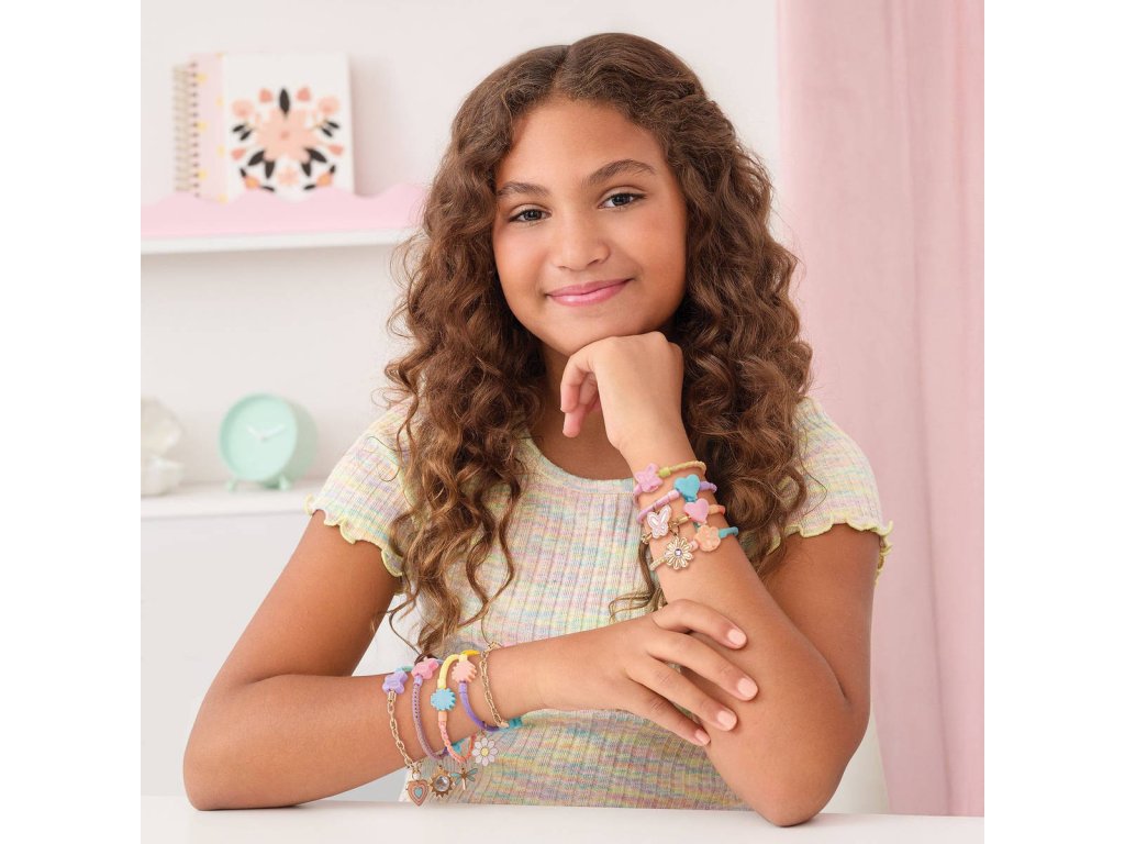 Vytvářej propojené styly s touto kompletní sadou na výrobu náramků! Kombinuj řetízky a barevné provázky tak, že je spojíš dekorativními spojkami. Ozdob je šesti super roztomilými přívěsky. Mladé designérky si mohou vytvořit jednoduché nebo vrstvené náramky, náramky na omotání nebo dokonce náhrdelníky – a pak je znovu kombinovat a měnit styl podle nálady. Přívěsky přidají každému výtvoru osobitý nádech a díky možnosti jednotlivé části kdykoli přehazovat se budou hodit ke každému outfitu dne.