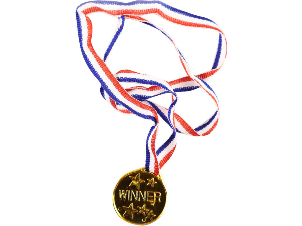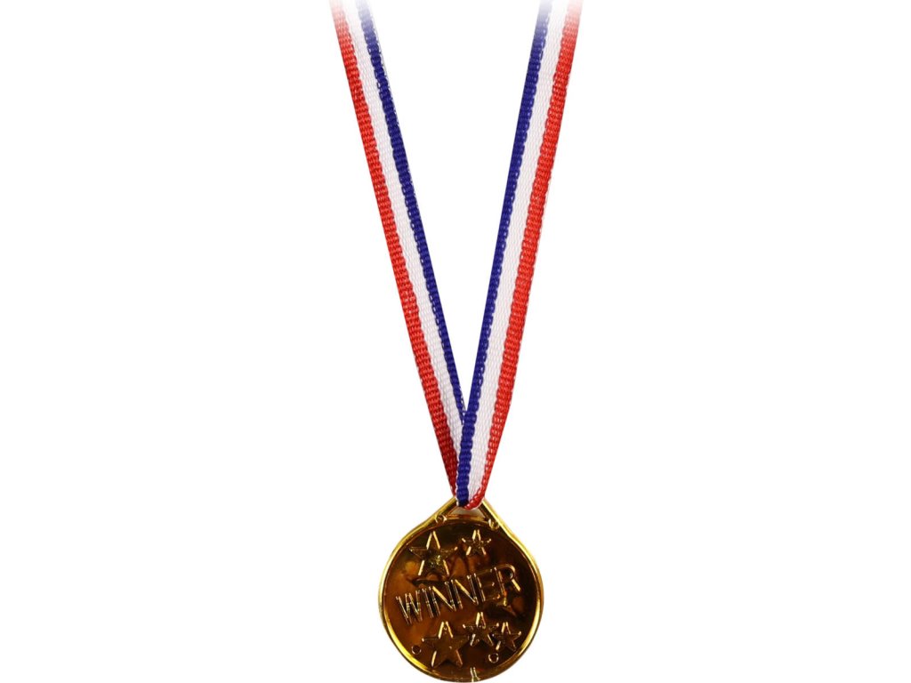 Oceň své kamarády opravdovými medailemi! Balení obsahuje 6ks zlatých medailí na šňůrce v barvě trikolóry. Medaile jsou vyrobeny z PVC.