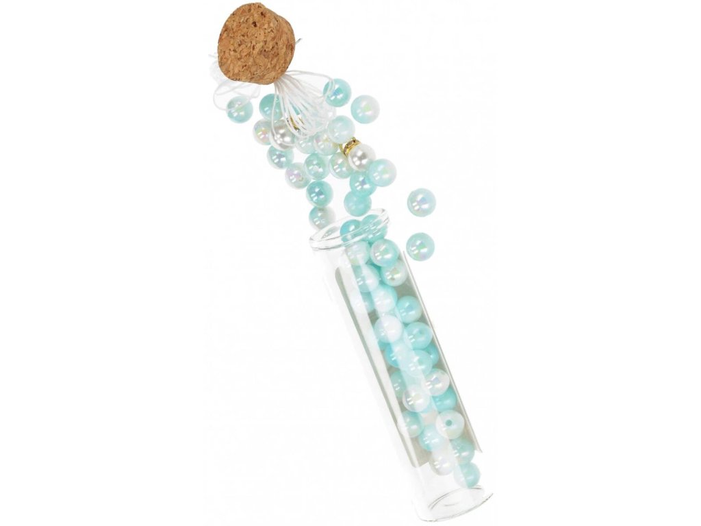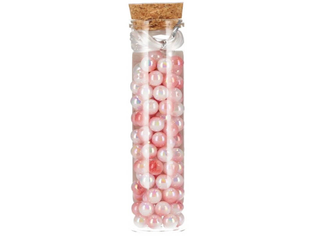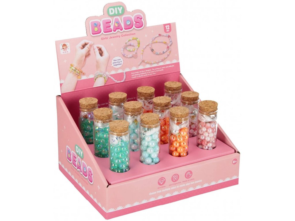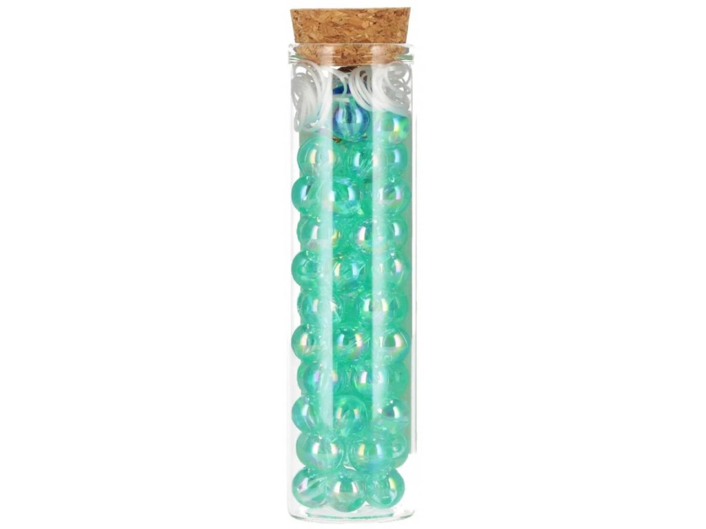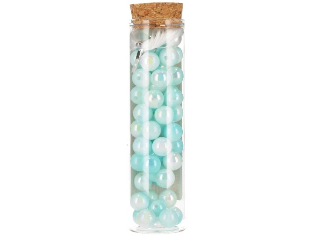 MEGA CREATIVE Navlékací perleťové korálky. 4 barevné varianty, součástí provázky a přívěsky. Baleno ve skleněné dózičce.