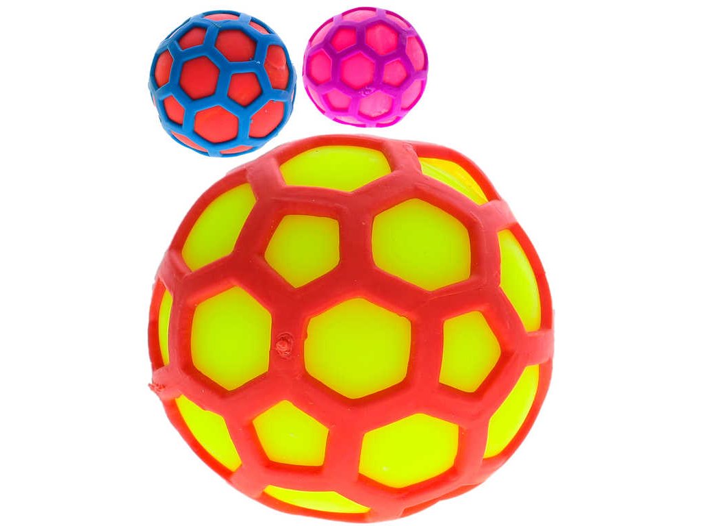 Míček hexagon strečový 6,5cm síťkový bublinový balónek 3 barvy plast