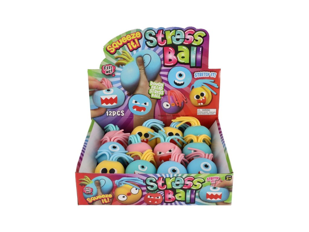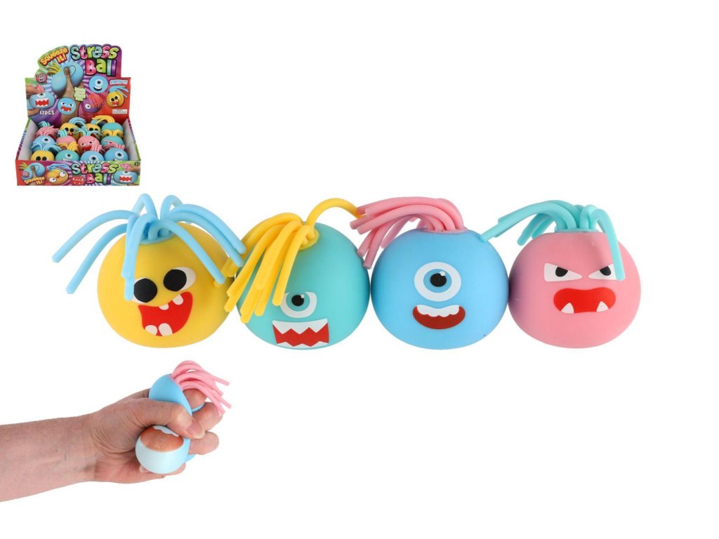 Míček s obličejem s třásněmi antistresový mačkací sliz 6cm 4 barvy 12ks v boxu