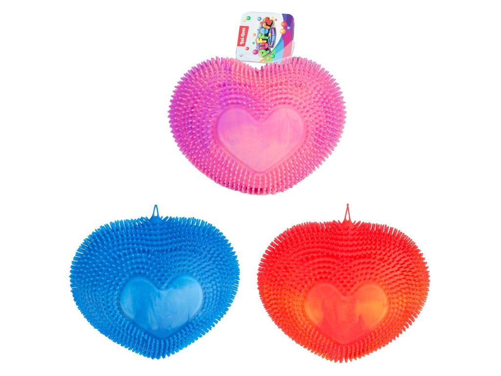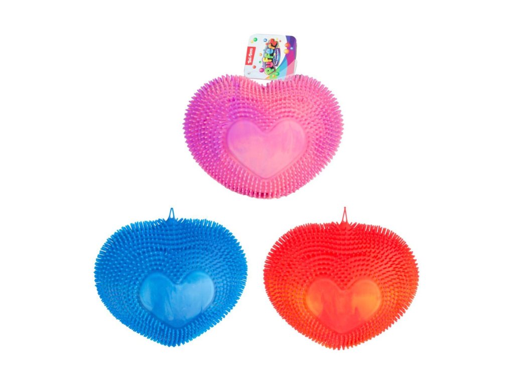 Míček srdce mačkací chlupatý antistresový silikon 18cm duhový 3 barvy